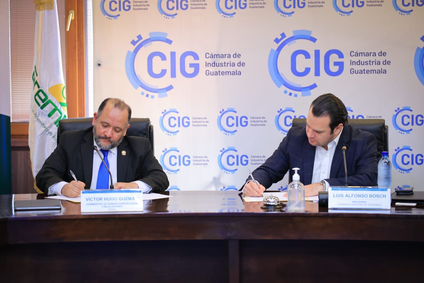 El Ministerio de Agricultura, Ganadería y Alimentación (MAGA) firmó un convenio de cooperación con la Cámara de Industria de Guatemala (CIG) con el fin de establecer programas de capacitación a productores en todo el país, para fortalecer sus capacidades agrícolas.