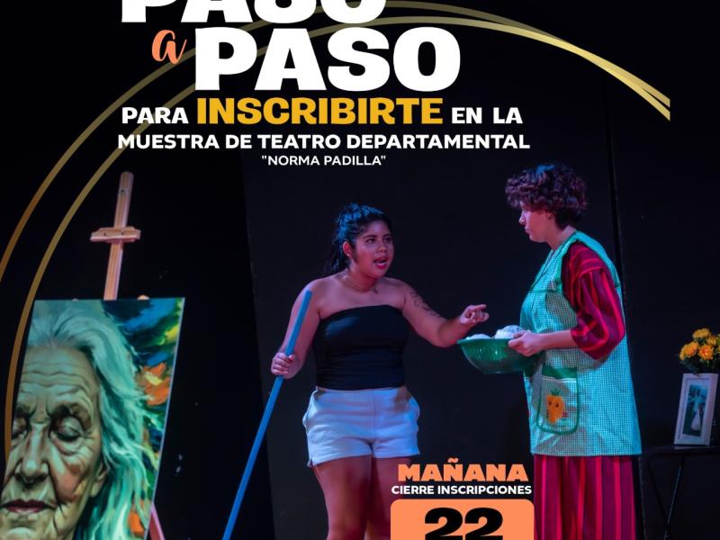Regístrate para representar a tu departamento en la Muestra de Teatro Departamental “Norma Padilla”, un espacio donde podrás mostrar y reforzar el talento de tu conjunto artístico.
