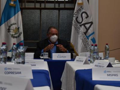 El comisionado Ruano, presentó el trabajo que viene desarrollando la COPRESAM principalmente los alcances tenidos en la gestión del agua y saneamiento en los municipios a través de la implementación de las OMAS.
