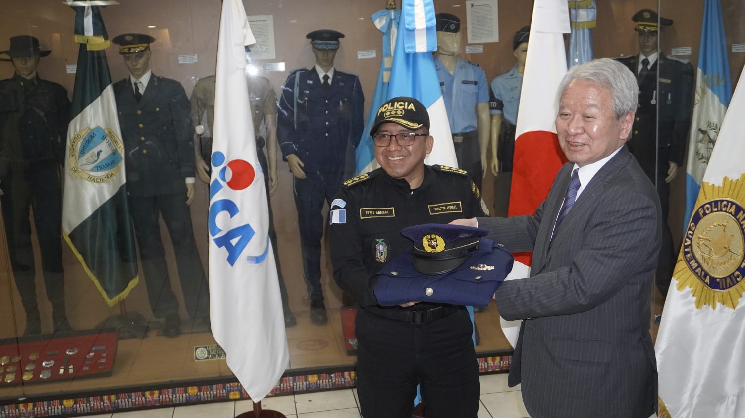 El Director General de la Policía Nacional Civil (PNC), el Director General Adjunto y el Subdirector de Prevención del Delito, recibieron ayer la visita del Embajador de la República de Japón Yamamoto Tsuyoshi y el Presidente de la Agencia de Cooperación Internacional de Japón (JICA) Tanaka Akihiko para conocer los avances del proyecto de Policía Comunitaria. La reunión se realizó en las instalaciones de la Dirección General de la PNC, zona 1 capitalina.