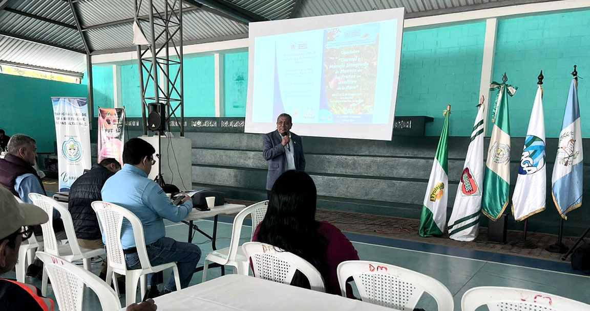 Brindar la información de forma oportuna y que las y los agricultores conozcan medidas de prevención efectivas ante las plagas, son parte de los lineamientos que el Ministerio de Agricultura, Ganadería y Alimentación (MAGA) impulsa, en esta ocasión en conjunto con el Programa Nacional de Moscas de la Fruta fue impartida en San Bartolomé Milpas Altas, Sacatepéquez, una instrucción sobre el manejo y control integrado del insecto en mención.