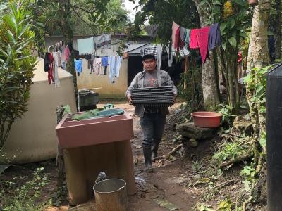 Las familias han encontrado además formas creativas de reutilizar bolsas de materiales de Mano a Mano, utilizándolas en piloneras y otras actividades productivas.