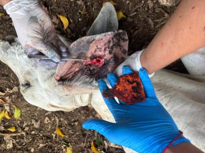 Como parte de las acciones fueron inspeccionados 12 mil 348 animales durante la semana epidemiológica 31, correspondiente del 28 de julio a 1 de agosto de 2025. Asimismo, se trataron a 5969 animales, se inspeccionaron 415 vehículos que transportan ganado y se capacitaron en los puestos de control e inspección ubicados en los departamentos de Izabal y Petén, a 460 personas, entre transportistas y ganaderos.