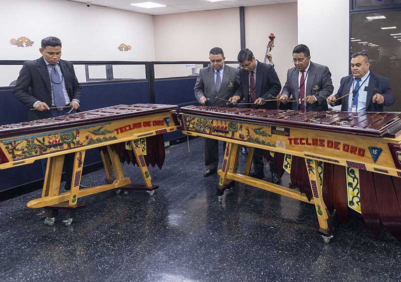 Desde 1976, el Ministerio de Finanzas Públicas (Minfin) cuenta con un talentoso grupo de músicos especialistas en tocar el instrumento más representativo del acervo musical de nuestro país, la marimba. Este conjunto de marimbistas tiene por nombre “Teclas de Oro”, el cual fue propuesto por Francisco Soler y Pérez, en el año de 1976, en alusión al dinero que se recaudaba por parte de la institución. En la actualidad, son 6 integrantes que la conforman e interpretan un gran repertorio de melodías que forman parte de diferentes autores nacionales. “Teclas de Oro”, ha puesto en alto a nuestra institución, participando en actividades culturales nacionales e internacionales, asimismo, en diferentes eventos institucionales. Este 20 de febrero que se celebró a este instrumento musical, y símbolo patrio nacional, por tal razón, el ministro Jonathan Menkos Zeissig extiende una felicitación a cada uno de los colaboradores que forman parte de “Teclas de Oro” porque juntos en armonía y acompañados de su increíble talento nos deleitan con hermosas melodías que forman parte de la historia cultural de nuestro país.