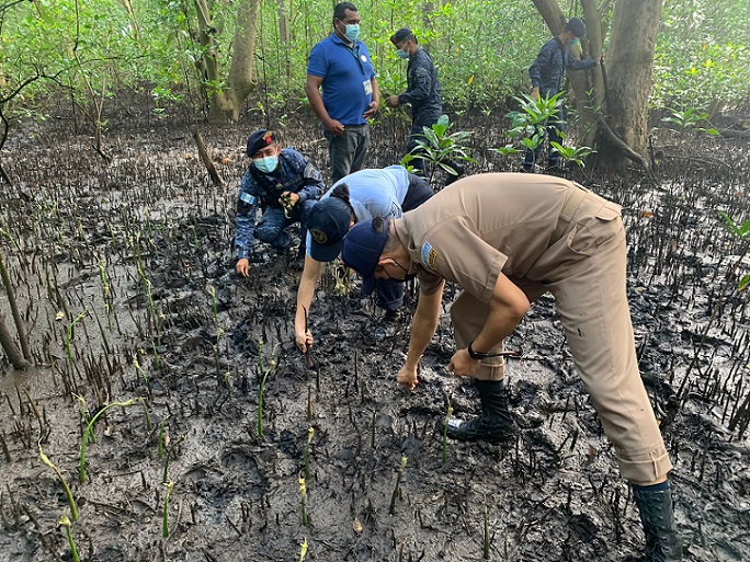 En el ejercicio de la Autoridad Marítima Nacional, la Marina de la Defensa Nacional a través de la Dirección General de Asuntos Marítimos y la Brigada de Infantería de Marina, en coordinación con el Consejo Nacional de Áreas Protegidas (CONAP), celebran el Día Internacional de la Defensa del Ecosistema Manglar, sembrando 3,000 candelillas de mangle rojo en el Parque Nacional Sipacate Naranjo, Sipacate, Escuintla.