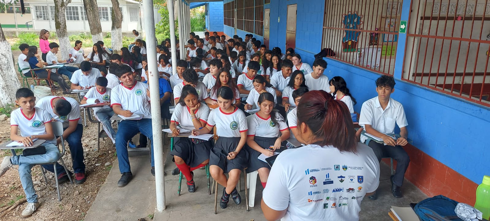 La delegación de Petén también lleva a cabo procesos formativos de Guardianes Ecológicos en el departamento. En el Instituto de Ciencias Agroforestales y Vida Silvestre de Poptún, 56 estudiantes de diversificado recibieron el módulo tres y cuatro del programa.