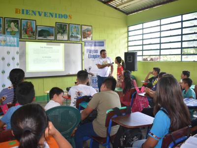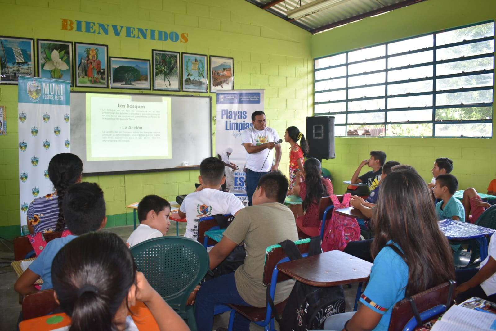 Por otra parte, con estudiantes de primaria de la Escuela Oficial Rural mixta aldea El Naranjo, Flores, la delegación impulsó las buenas prácticas ambientales, la importancia de los bosques y el cuidado del agua. Participaron 30 alumnos y se llevó a cabo en coordinación con la Unidad de Gestión Ambiental de Flores.