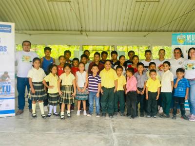 La delegación también visitó la Escuela Oficial Rural Mixta barrio El Arrollo, San Benito, y capacitó a 167 alumnos sobre el Reglamento 164, principalmente la separación de los residuos y desechos en orgánico, papel y cartón, plástico, metal, vidrio y multicapa.