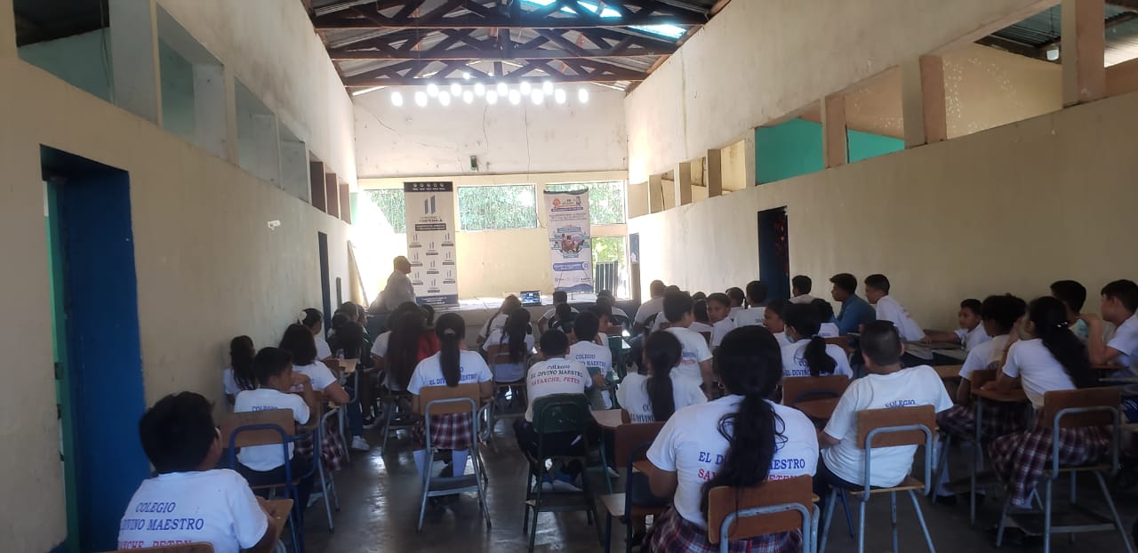 En Sayaxché, 57 estudiantes y docentes del Colegio Privado Mixto el Divino Maestro recibieron un taller sobre buenas prácticas ambientales para la protección y cuidado de los recursos naturales y prevenir incendios forestales.