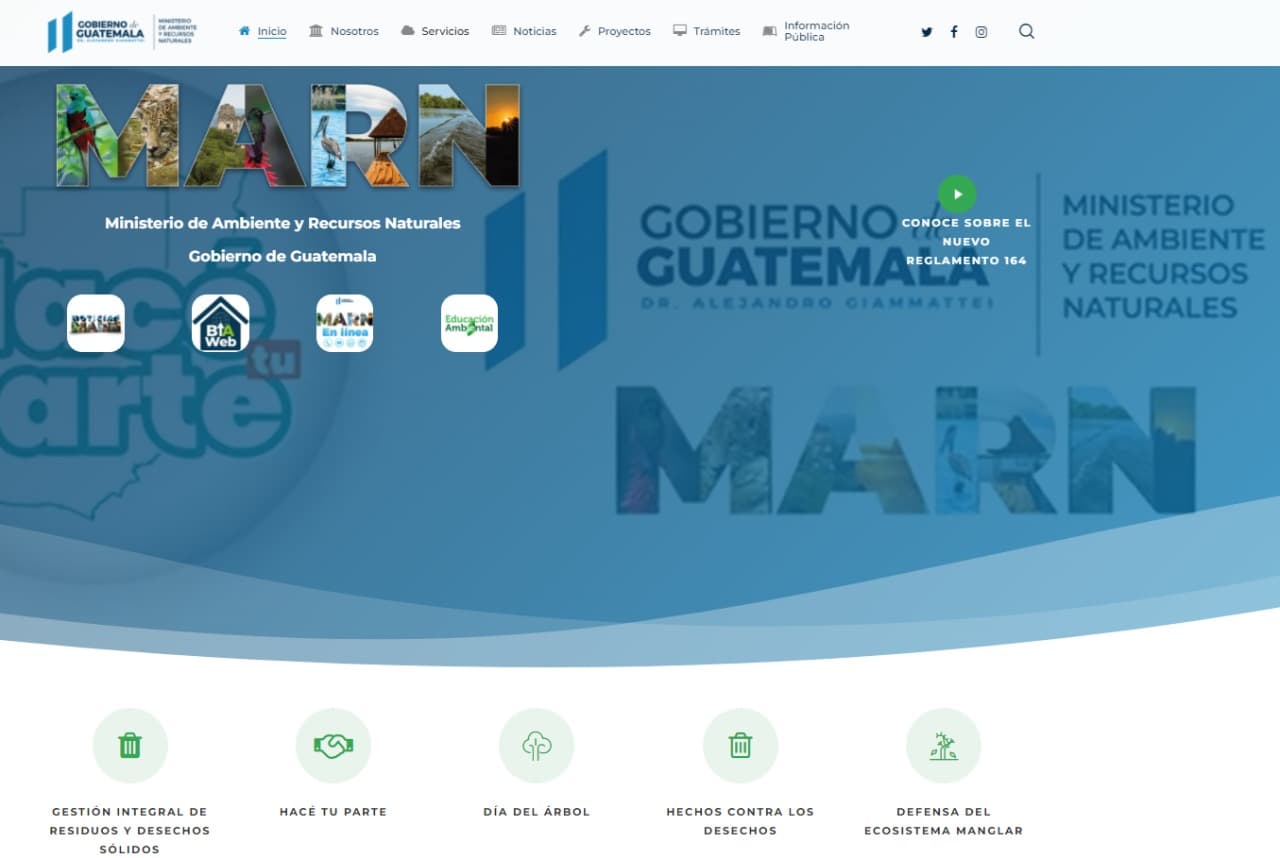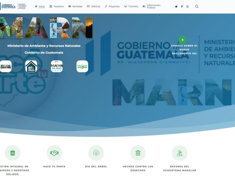 Para conocer el nuevo sitio web pueden visitar www.marn.gob.gt y acceder a nuestros servicios. Ministerio de Ambiente y Recursos Naturales ¡Eficiente y transparente!