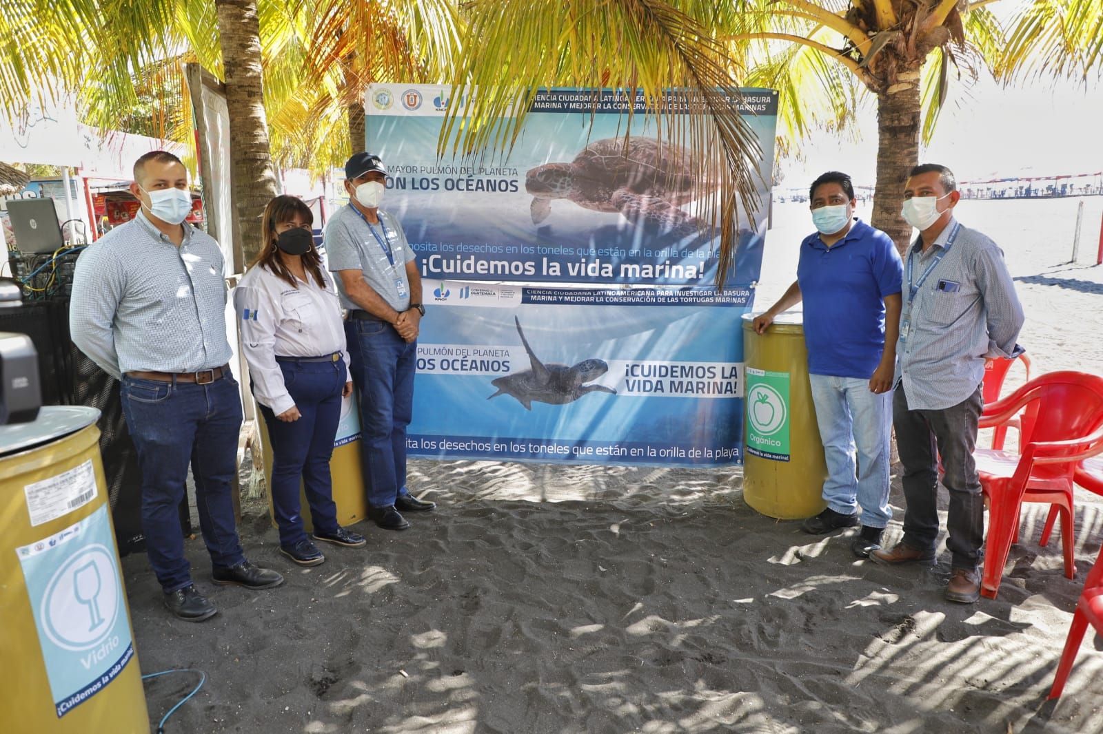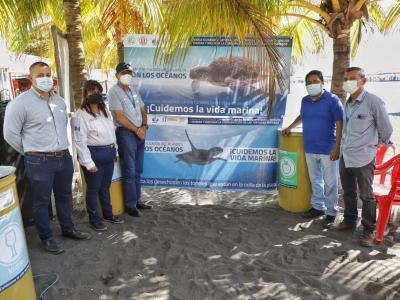 Como parte de las acciones que se desarrollan, la Dirección de Formación y Participación Social del MARN entregó a la Municipalidad de San José, Escuintla, depósitos para residuos y desechos, identificados con distintos colores para que los visitantes de la playa depositen su basura de forma correcta.