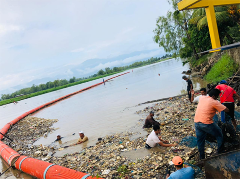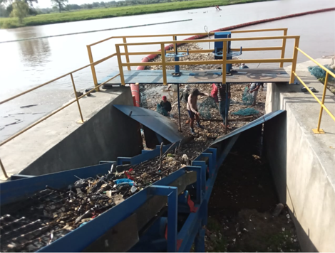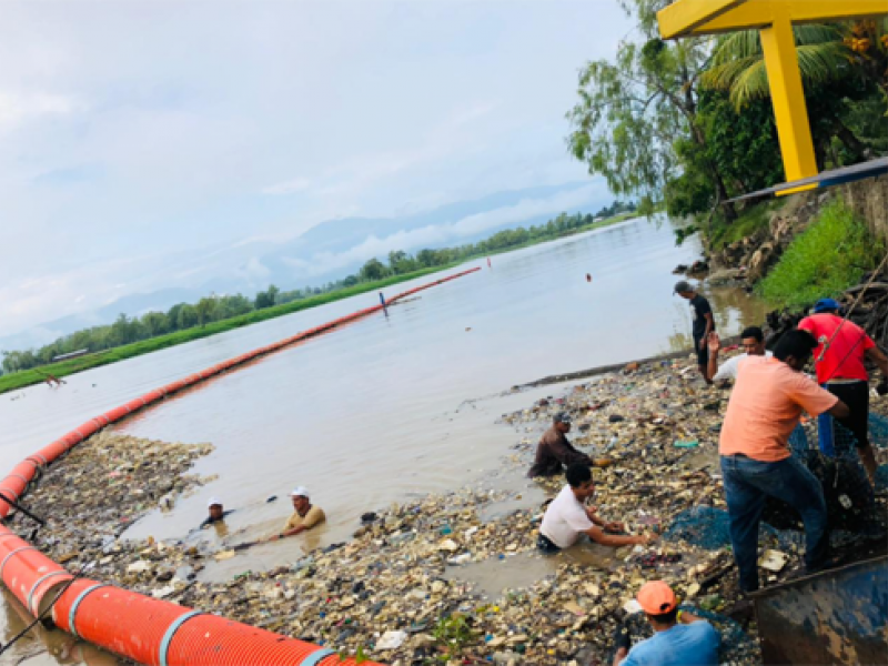 En la aldea El Quetzalito, Puerto Barrios, Izabal, la cartera de Ambiente tiene en funcionamiento una barda industrial para captar desechos sólidos flotantes, lo que ha permitido recolectar 60 toneladas de plástico, aluminio y duroport, entre otros contaminantes, en los primeros cinco meses del año.