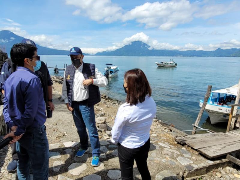 La primera visita de Lavarreda fue al embarcadero de Tzanjuyú, Panajachel, junto a Luis Ruano, titular de la Comisión Presidencial de Asuntos Municipales (Copresam), como parte de las coordinaciones para poner en marcha un plan integral de tratamiento de aguas residuales en el municipio, y dar una solución definitiva a la situación local.