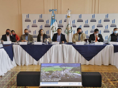 El ministro de Ambiente, Mario Rojas Espino, se reunió, hoy, con los alcaldes de las municipalidades de la Mancomunidad Gran Ciudad del Sur y la Autoridad para el Manejo Sustentable de la Cuenca del Lago de Amatitlán (AMSA), para discutir sobre la habilitación del nuevo vertedero y el cierre técnico del actual.