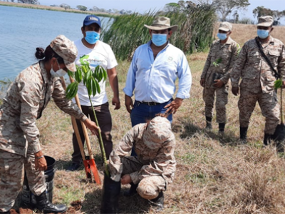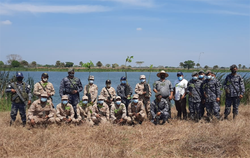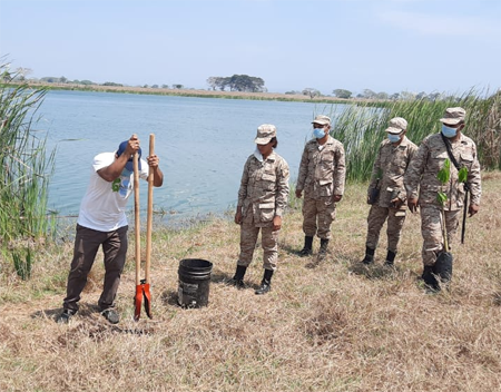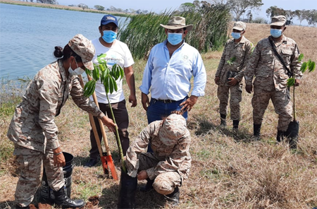Los árboles los plantaron las mujeres de la delegación del MARN e integrantes del Comando Aéreo del Sur y las reservas militares.