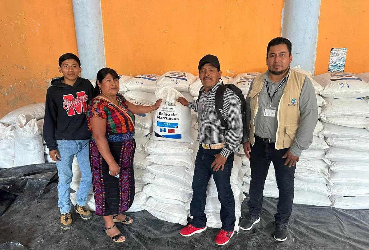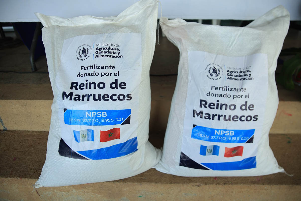 El Reino de Marruecos hizo una donación de 200 toneladas de fertilizante, la cual benefició a 5 mil 873 agricultores, donación que se brindó gracias al Acuerdo Marco de Cooperación entre los gobiernos del Reino de Marruecos y Guatemala.