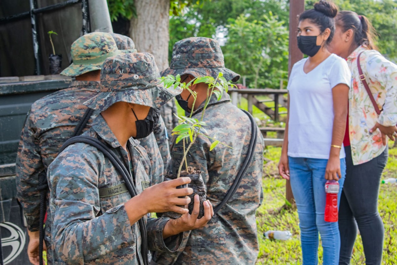 Esta actividad de reforestación se realizó con el apoyo de elementos del Ejército de Guatemala de la Primera Brigada de Infantería, personal de la fundación Calmec, representantes de la Mancomunidad del Lago Petén Itzá, personeros del Proyecto Ecológico Chunyá y de la Unidad de Gestión Ambiental Municipal de San Andrés.