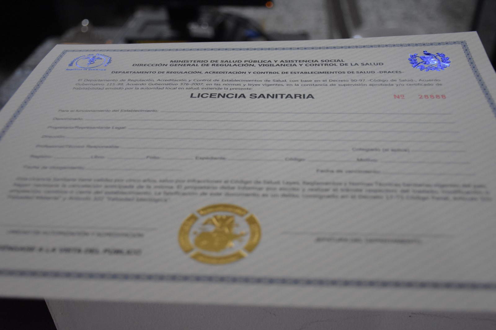Para que un establecimiento de salud pueda funcionar y estar autorizado, debe solicitar la licencia sanitaria de acuerdo a la cartera de servicios que ofrece, el encargado de emitir este documento es el Departamento de Regulación, Acreditación y Control de Establecimiento de Salud -DRACES- del Ministerio de Salud Pública y Asistencia Social -MSPAS-.