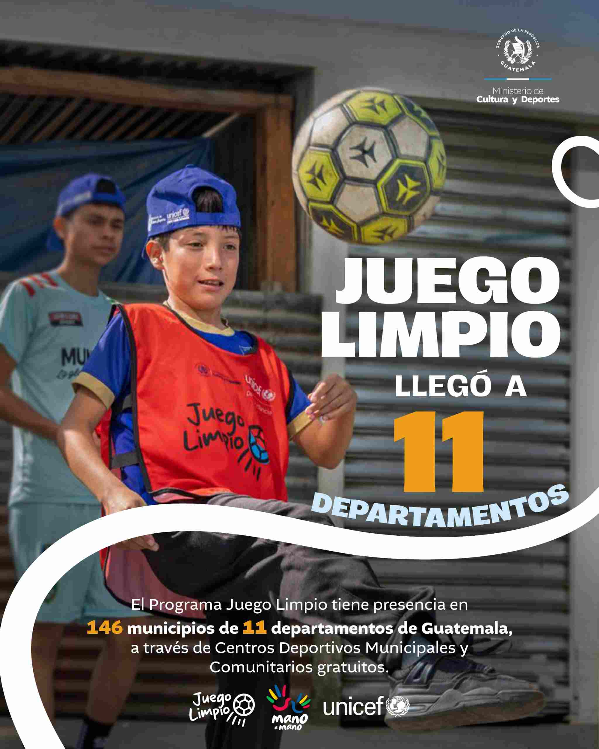 El programa Juego Limpio ha llegado a 146 municipios con Centros Deportivos Municipales y Comunitarios gratuitos, impactando a miles de niñas, niños y adolescentes en 11 departamentos.