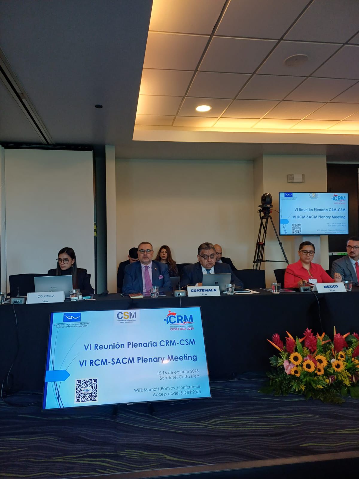 San José, Costa Rica, 16 de octubre de 2025. El Vicecanciller Antonio Escobedo participa en la VI Reunión Plenaria entre la Conferencia Regional sobre Migración (CRM) y la Conferencia Suramericana sobre Migraciones (CSM), la cual reúne a más de 20 países del continente y se lleva a cabo en la ciudad de San José, Costa Rica.