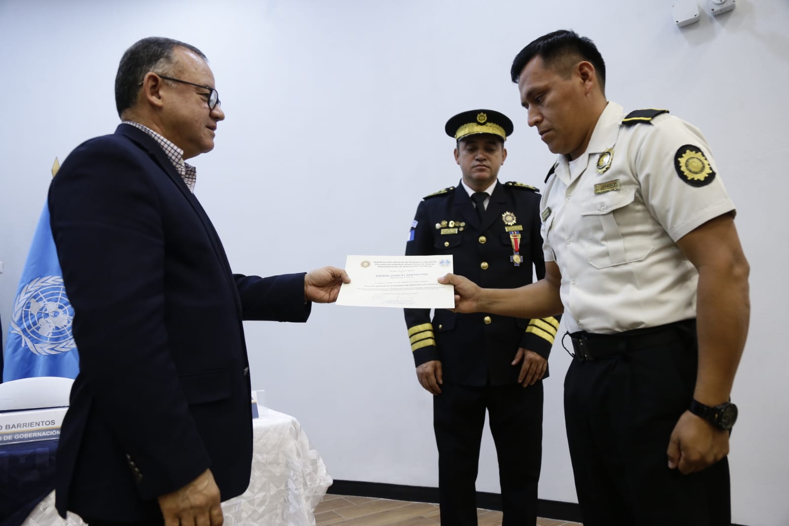 Este 3 de marzo concluyó el taller Función Policial en el Proceso de Atención a la Víctima, donde participaron 57 agentes de la Subdirección General de Operaciones (SGO), la clausura se realizó en la Escuela de Especialidades de la Policía (Eepol). Al acto asistió el Ministro de Gobernación, el Tercer Viceministro de Prevención de la Violencia y el Delito, mandos de la Policía Nacional Civil (PNC) y el representante del coordinador residente del sistema de las Naciones Unidas en Guatemala.