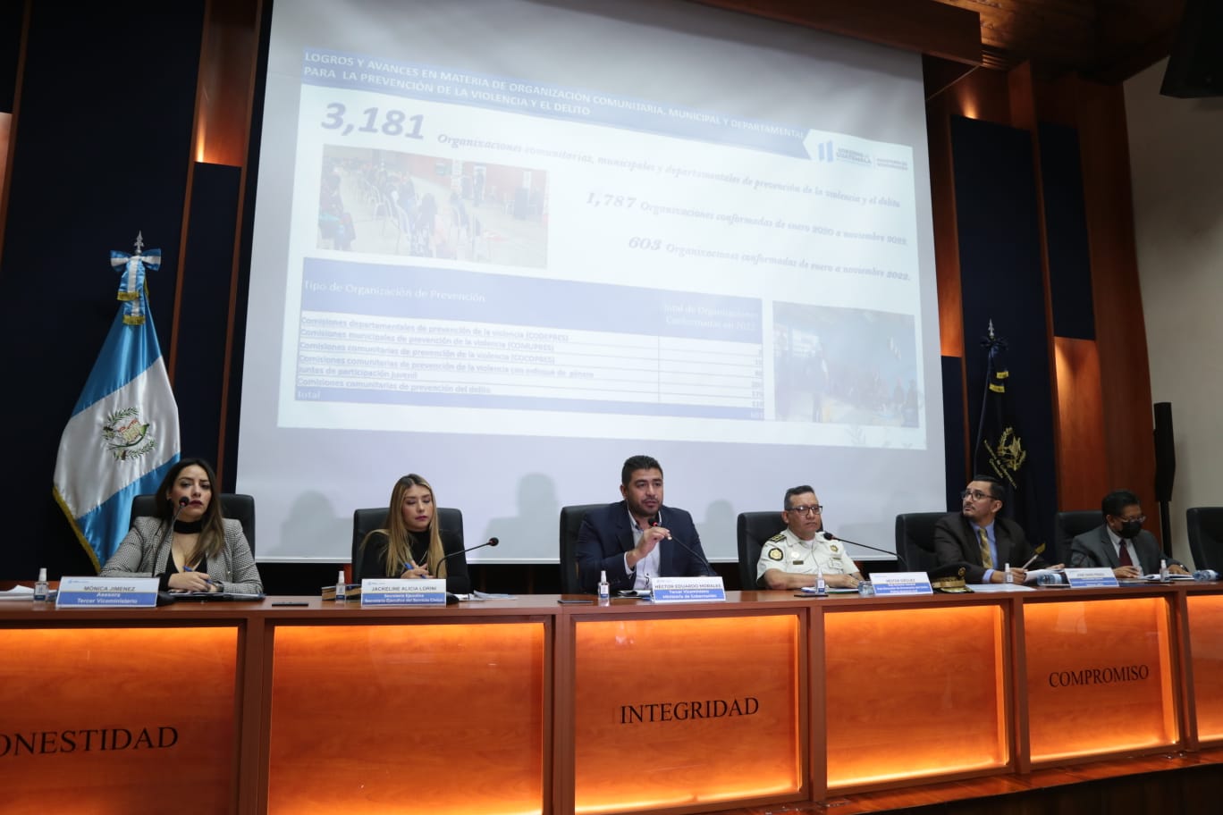 Este 8 de diciembre el Tercer Viceministro de Gobernación, Héctor Eduardo Morales Alarcón presentó los resultados y logros obtenidos mediante el trabajo ejecutado por la Subdirección General de Prevención de la Violencia y del Delito (SGPD) de la Policía Nacional Civil (PNC), la Unidad para la Prevención Comunitaria de la Violencia (UPCV), la Unidad de Género Multiculturalidad, Juventud y Niñez y la Secretaría Ejecutiva de Servicio Cívico, relacionado a la prevención de la violencia y del delito en Guatemala.