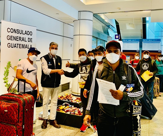 Los guatemaltecos, que forman parte del Programa del Trabajador Extranjero Temporal impulsado por el Gobierno de Canadá, fueron recibidos a su llegada al Aeropuerto de Montreal, en donde obtuvieron información sobre los servicios consulares y las líneas de contacto disponibles para tener comunicación constante con los funcionarios de nuestro país en esa ciudad.
