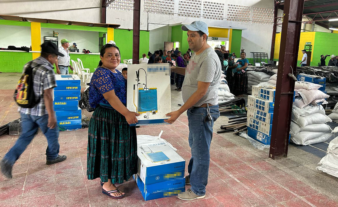 Continúa en el municipio de Poptún, departamento de Petén, la distribución del Bono Campesino en su modalidad de autoconsumo, beneficiando a las familias que se dedican a la agricultura familiar, dotándolas de aperos de labranza, bombas y semillas de maíz.