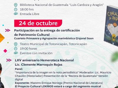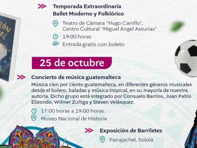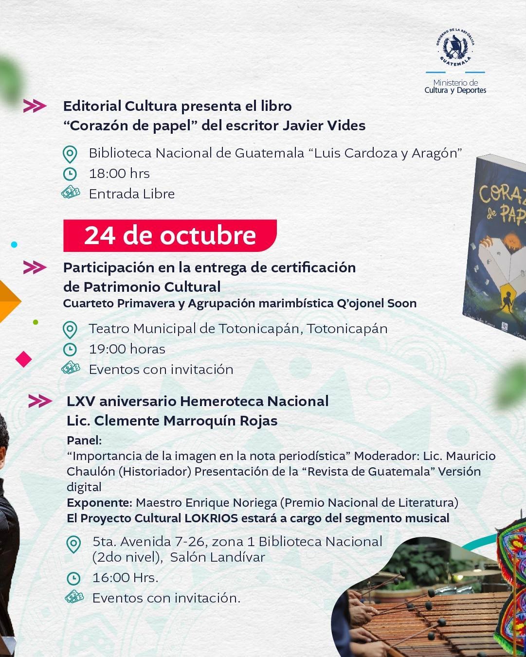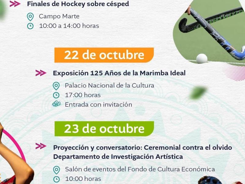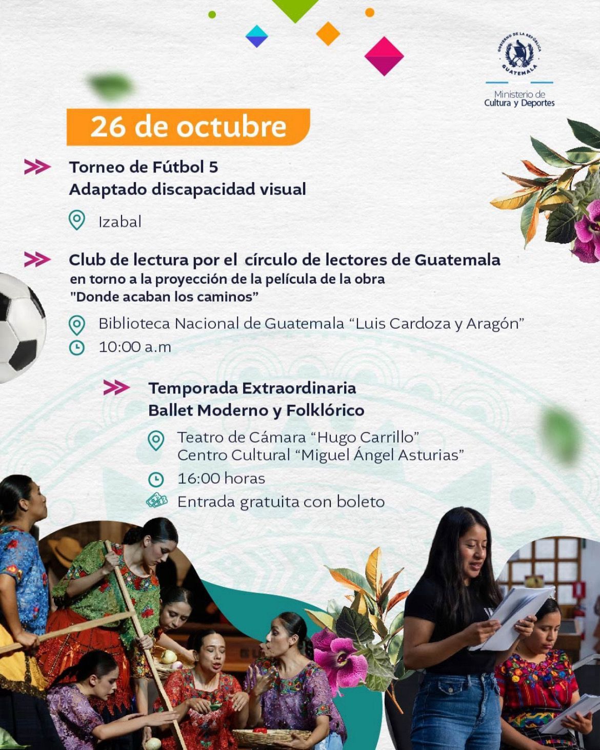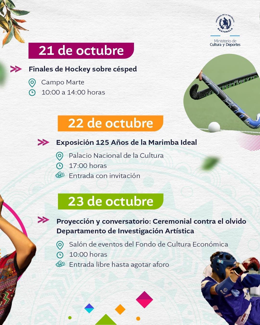 El Ministerio de Cultura y Deportes (MCD) se presenta la agenda de actividades que se llevan a cabo entre el 21 y 26 de octubre de 2025 en diversas sedes.