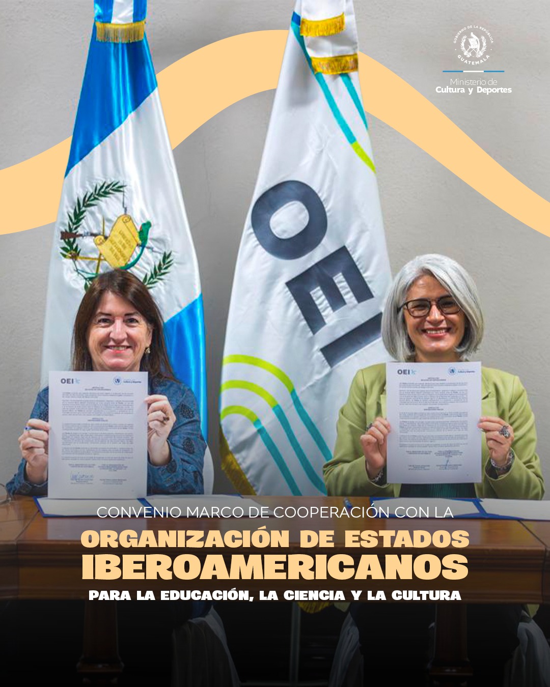 La firma fue presidida por la ministra Liwy Grazioso y la directora y representante permanente en Guatemala de la OEI, Patricia Maldonado. Esta alianza representa un paso importante en el fortalecimiento del desarrollo cultural y la protección del patrimonio.
