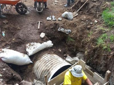 Con el objetivo de asegurar el paso vehicular y prevenir inundaciones o derrumbes durante el invierno, se realizan obras de cambio de tubería y construcción de cabezales en el tramo Los Encuentros, San Buena Aventura, Caserío Paquisis, aldea Pixabaj, en el municipio de Sololá.
