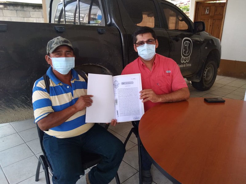 El Alcalde recibió los documentos de donación, a través de los miembros de la E.C.A. La Morenita, acto que se realizó en las instalaciones de la Oficina Regional del Fondo de Tierras.