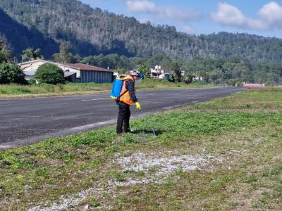 En el Aeródromo de Cobán, los trabajos de mantenimiento siguen en marcha, con chapeo en los 10 metros de orilla de pista y la aplicación de herbicida en las áreas tratadas la semana pasada. Además, se gestionó la poda de un árbol, considerado un obstáculo debido a su cercanía con la cabecera 03 del aeródromo. Para fomentar el turismo, el Instituto Guatemalteco de Turismo (INGUAT) también proporcionó material promocional, para los usuarios que visitan este importante destino.
