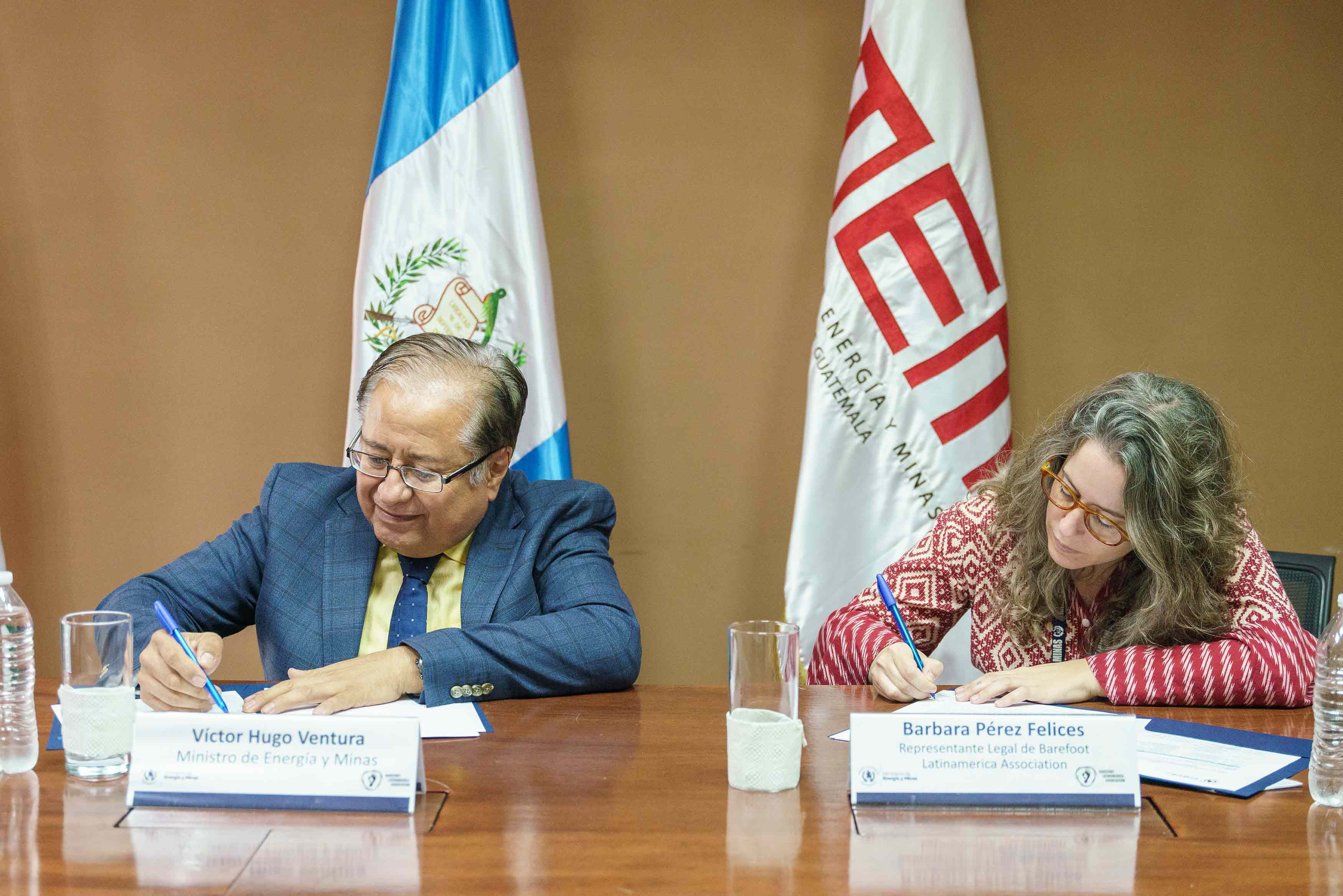 El Ingeniero Víctor Hugo Ventura, Ministro del Ministerio de Energía y Minas de Guatemala, y la señora Bárbara Pérez Felices, representante de Barefoot Latin America Association-BLA, suscribieron una carta de entendimiento con el propósito de establecer mecanismos de cooperación destinados a facilitar alianzas estratégicas que promuevan el Desarrollo Rural Integral del país.
