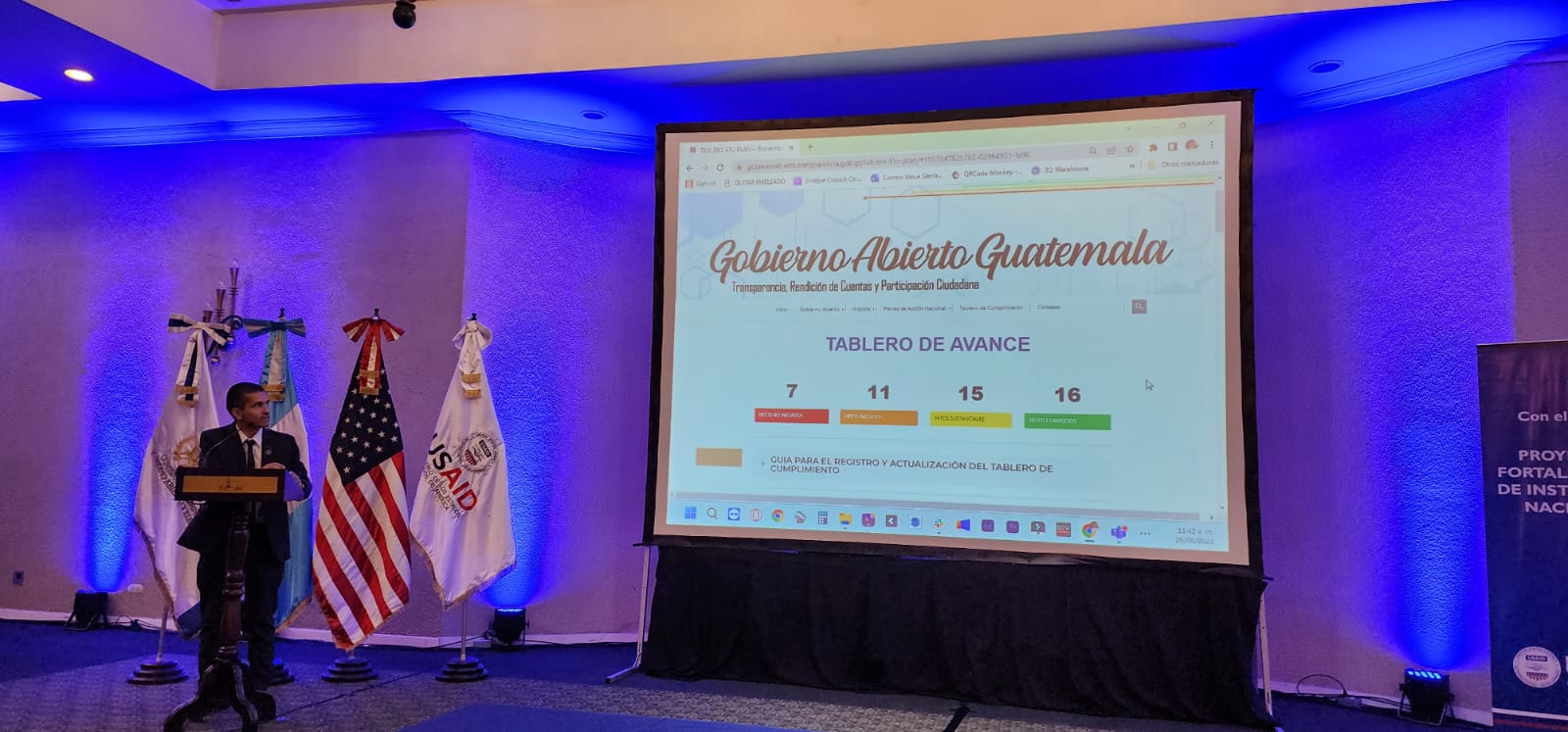 Guatemala, 20 de junio del 2023, En el marco del cumplimiento del 5to Plan de Acción Nacional de Gobierno Abierto 2021-2023, la Comisión Presidencial de Gobierno Abierto y Electrónico (GAE) con el apoyo del Proyecto de Fortalecimiento de Instituciones Nacionales de USAID, realizó la reunión de Mesa de Gobierno Abierto con el objeto de conocer el cumplimiento al mes de junio de los compromisos e hitos que forman parte del Plan de Acción.