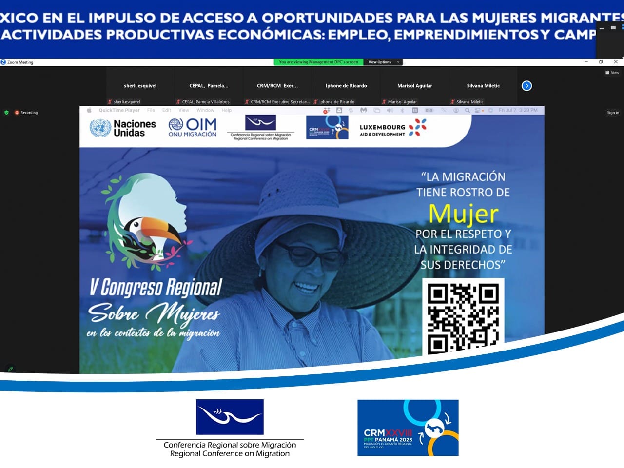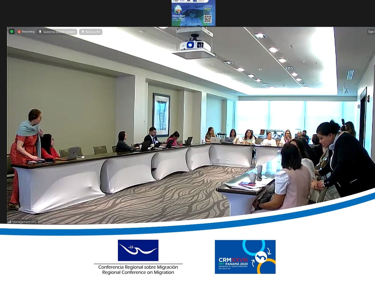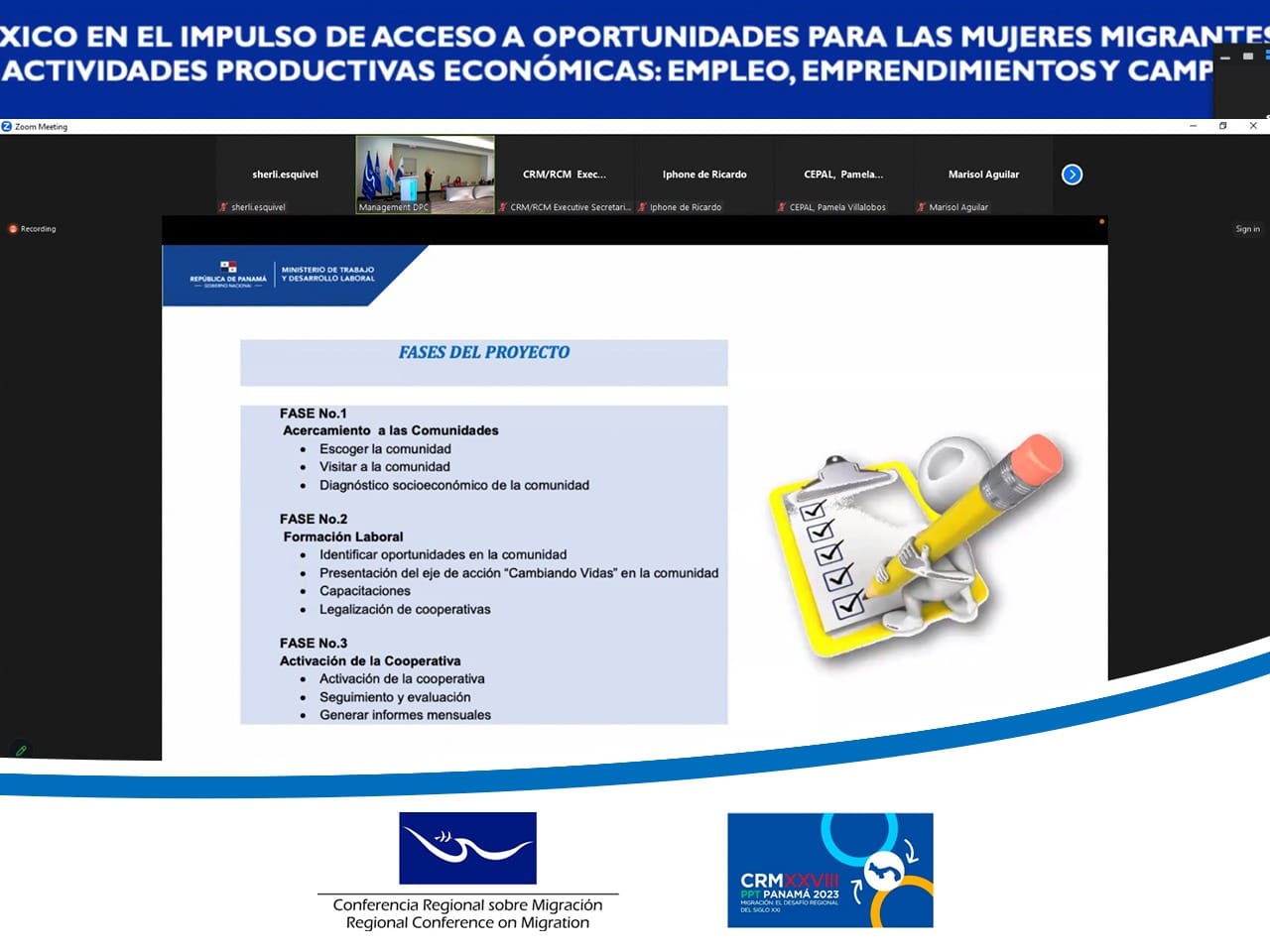 Las representantes de la Red de Mujeres Empresarias y Emprendedoras en Centroamérica y República Dominicana brindaron detalles de los proyectos que se han implementado para que las personas migrantes, especialmente las mujeres, tengan oportunidades de generar recursos económicos y que aporten a sus familias. La Red trabaja especialmente para que se respeten los derechos humanos de las mujeres migrantes a través de la generación de empoderamiento y liderazgo.