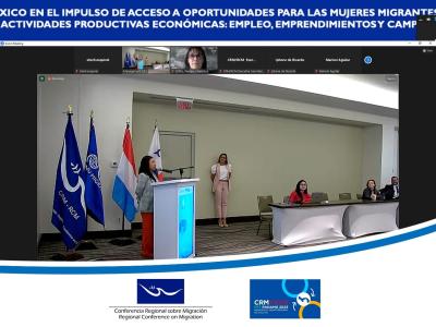 En esta mesa participó la delegada del Ministerio de Relaciones Exteriores, Yuliza Marroquín, donde se conoció cómo tanto Panamá como México, están aplicando estrategias de desarrollo a través de la capacitación de mujeres migrantes o en movilidad, para la generación de oportunidades laborales.