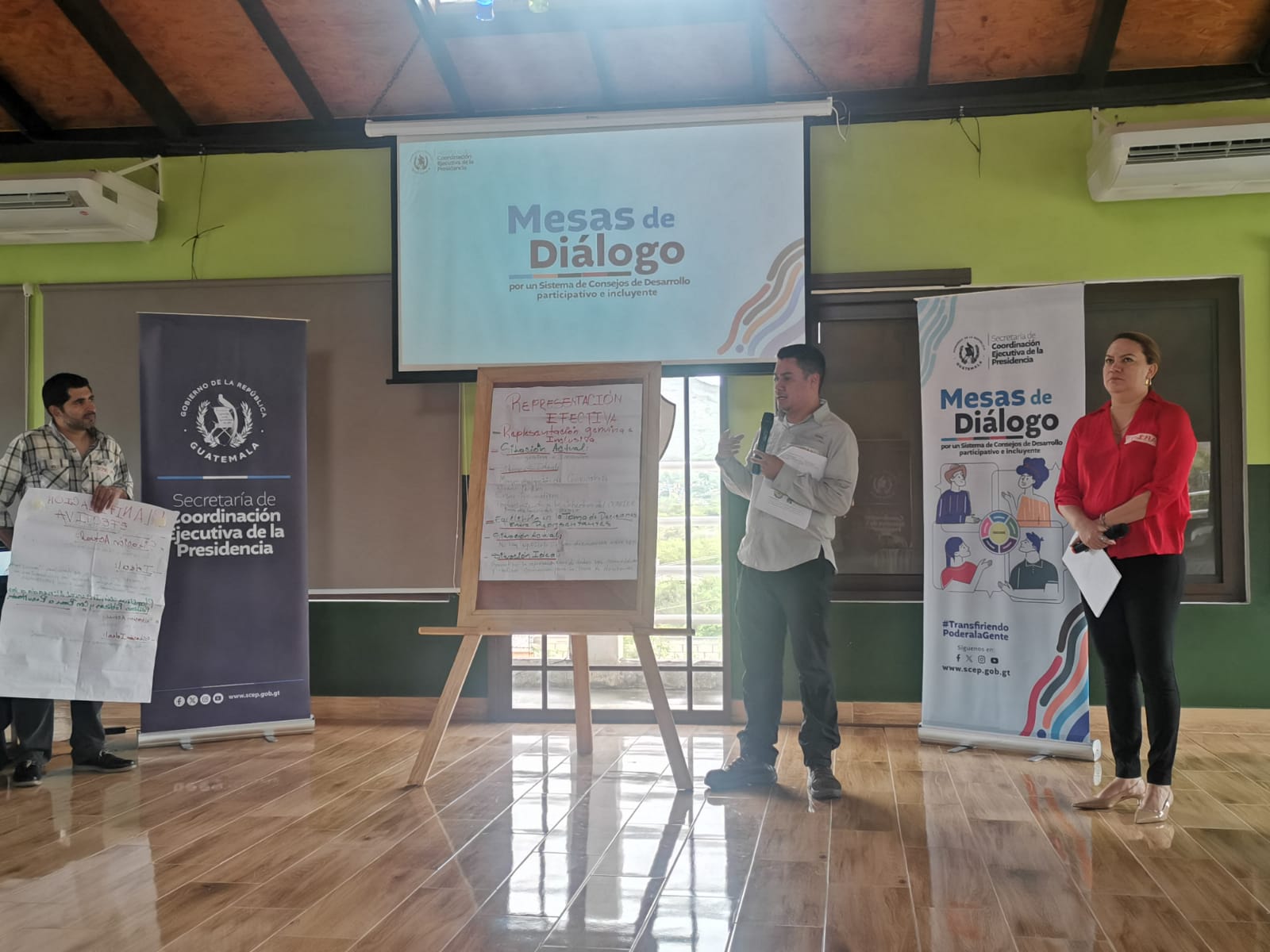 Guatemala, julio de 2024. La Secretaría de Coordinación Ejecutiva de la Presidencia, continúa avanzando en el proceso de discusión y participación ciudadana, en el que los representantes y actores de la sociedad civil e instituciones no gubernamentales del país, han aportado conocimientos, y experiencias para la mejora del funcionamiento del Sistema de Consejos de Desarrollo, a través de las mesas de diálogo.
