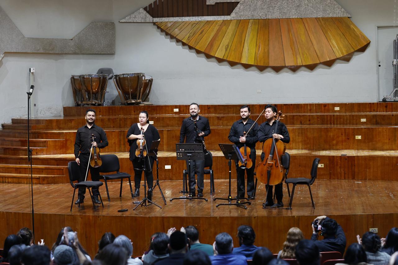 En la segunda parte, el piano cedió su espacio a las cuerdas, subiendo a escena los talentosos miembros del Cuarteto Primavera, que junto a Reyes interpretaron el “Quinteto para clarinete y cuarteto de cuerdas op. 34” de Carl Maria von Weber, obra escrita a inicios del siglo diecinueve.