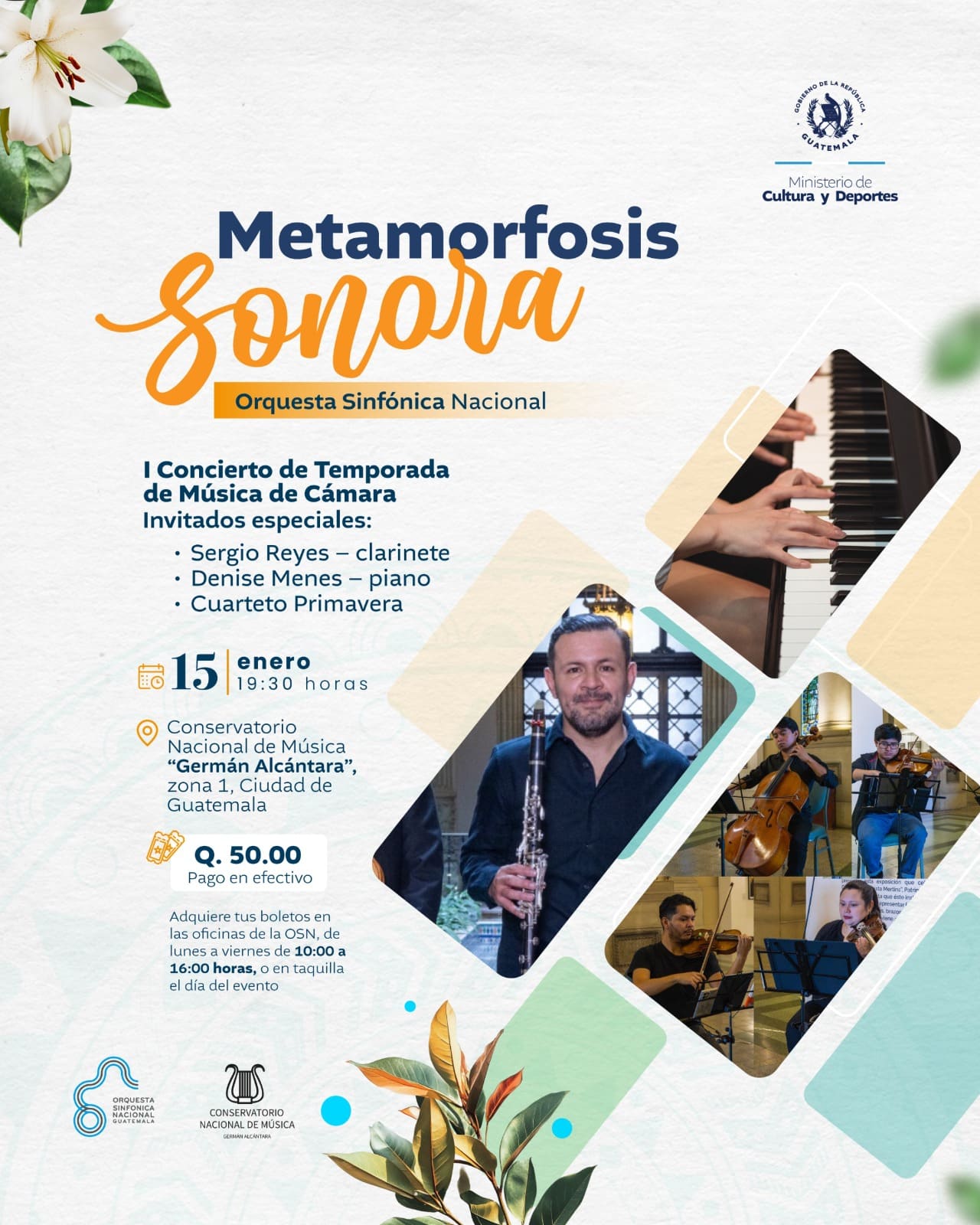 La fusión de los sonidos del clarinete, instrumentos de cuerda y el piano, harán eco en el Conservatorio Nacional de Música “Germán Alcántara” con "Metamorfosis sonora", de la Orquesta Sinfónica Nacional.