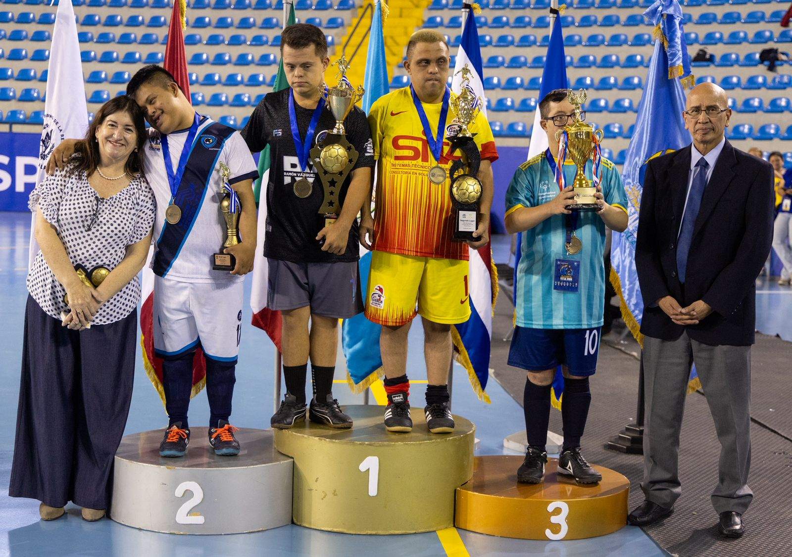 El segundo puesto fue para los anfitriones, Futsal Down Guatemala, con 13 puntos, mientras que el tercer lugar lo obtuvo Team Down Costa Rica. Además, se otorgaron premios individuales: el goleador del torneo fue Santiago Cruz y el premio al portero menos vencido fue para Javir Figueroa Álvarez.