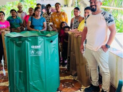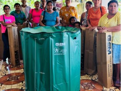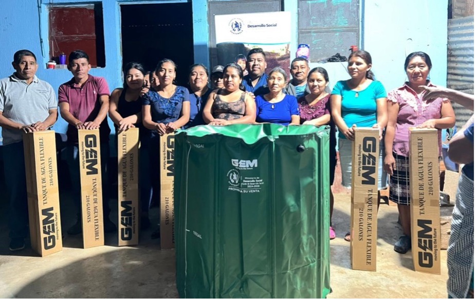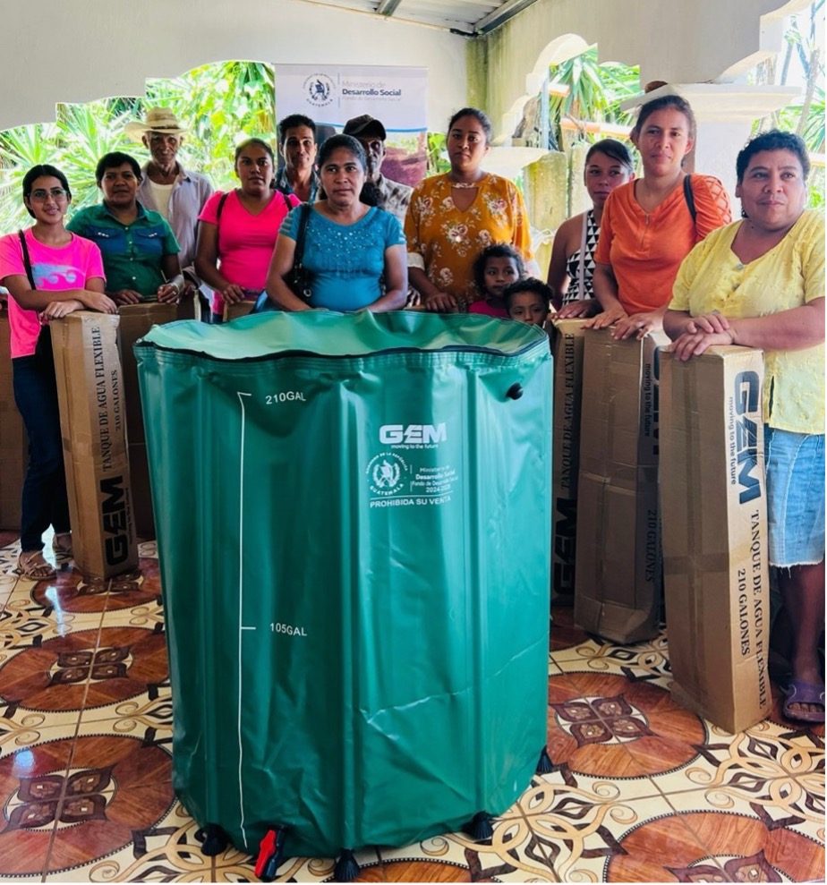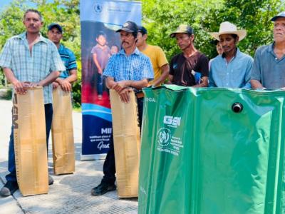 En la aldea San Luis Ilopango del municipio de Zapotitlán, 25 familias recibieron tanques flexibles al igual que 15 familias de la aldea Pinal I, para que tengan un recipiente adecuado de recolección que protegerá el agua contra la contaminación.