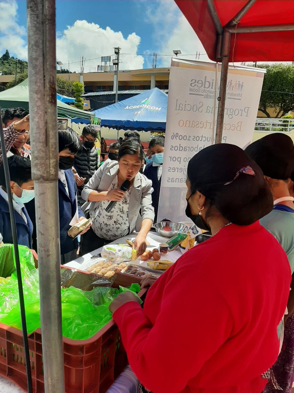 En el municipio de San José Ojetenam, San Marcos, no solo se imparte el programa Beca Social Artesano –que consiste en otorgar Transferencias Monetarias Condocionadas -TMC- a personas mayores de edad, con el propósito de fortalecer capacidades técnicas en la elaboración y aprendizaje de productos artesanales–, sino también se invitó a las usuarias a participar en la Primera Feria Agropecuaria de la localidad. Esto con el fin de vender los productos que aprendieron a elaborar, en este caso salporitas (pan dulce guatemalteco), para fomentar el emprendimiento y mejorar su situación económica.