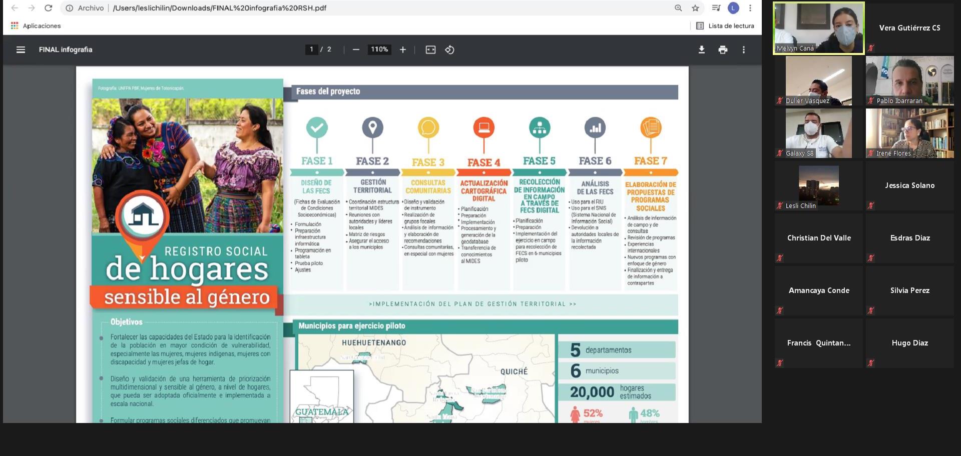 En busca de reportar los adelantos del Registro Social de Hogares Sensible al Género, representantes del Ministerio de Desarrollo Social -Mides- presentaron la situación actual de los procesos que lleva la implementación del plan piloto en Guatemala, a integrantes del Banco Interamericano de Desarrollo -BID-.