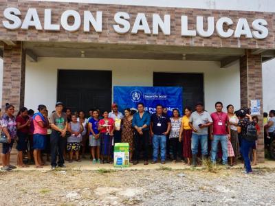 En la Aldea San Lucas, Micro Región I, se entregaron 158 molinos estándar, en apoyo a las amas de casa para facilitarles la elaboración de alimentos; 18 familias recibieron su kit de techo mínimo que consta de 10 láminas, 6 costaneras y 60 tornillos, para fortalecer sus viviendas; también para las labores agrícolas se entregaron 50 herramientas de labranza.