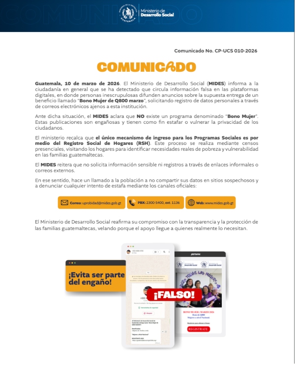 MIDES no cuenta con un Bono Mujer, no se deje engañar