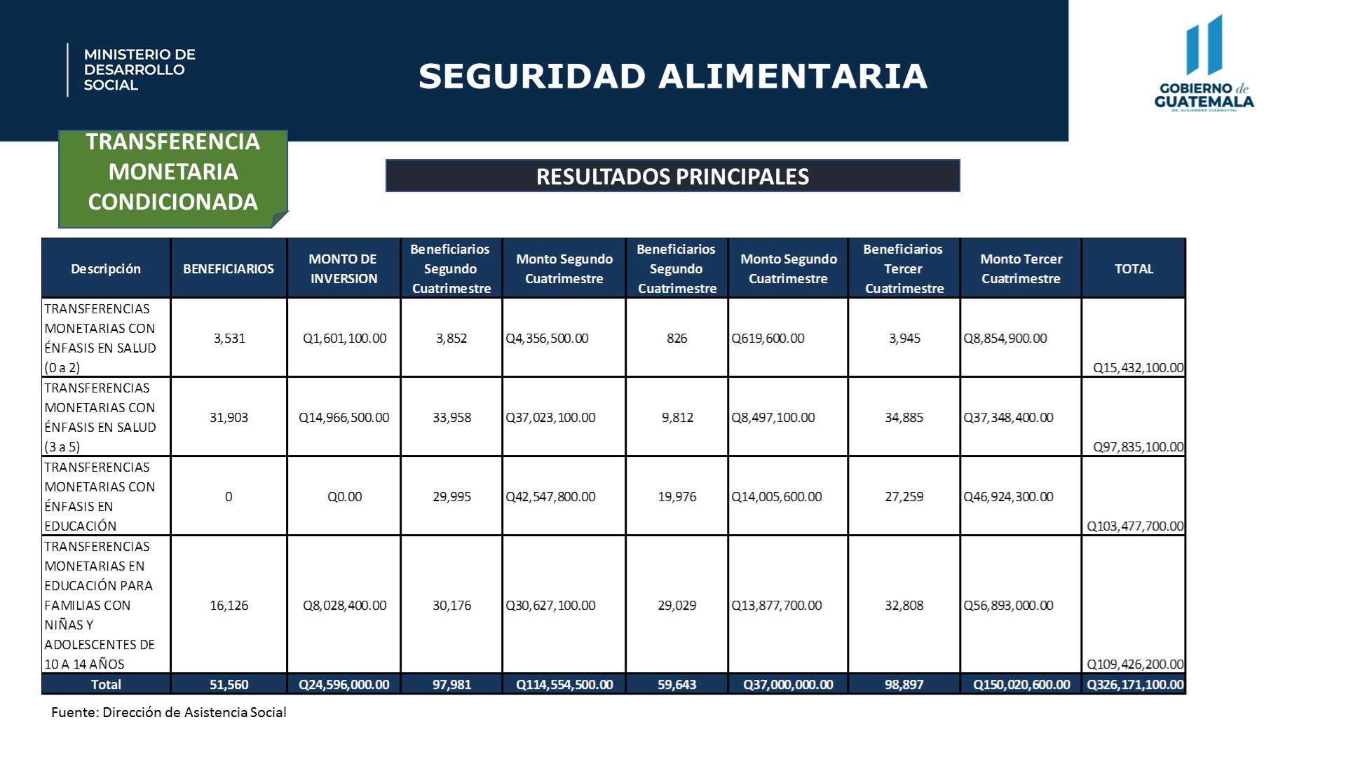 Entre éstos se encuentra: Bono Social, que realiza Transferencias Monetarias Condicionadas -TMC- promoviendo el acceso a servicios de salud y educación; Bolsa Social, que otorga una tarjeta de débito con la que se pueden adquirir productos de la canasta básica alimentaria; y Comedor Social, que ofrece desayunos y almuerzos de lunes a viernes, verificando que los alimentos cuenten con las cantidades calóricas necesarias y cumplan con alto estándares de higiene.