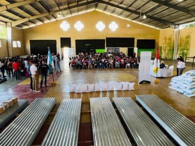 Se entregaron 941 sacos de arroz de 22 libras cada uno, donados por el gobierno de la República de China (Taiwán), orientado a la reducción de la inseguridad alimentaria; 759 kits de techo mínimo que consta de 10 láminas, 5 costaneras y 60 tornillos para mejorar las condiciones de habitabilidad y reforzamiento de techos para brindar mejor seguridad a las familias; 275 herramientas de labranza para ayudar en las tareas del campo; 379 tanques flexibles con capacidad de almacenar 210 galones de agua en apoyo a las diferentes tareas del hogar y 182 tubos de 8 pulgadas para proyectos de drenajes.