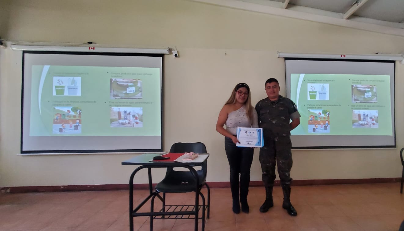 Los temas abordados fueron sobre medio ambiente y recursos naturales con 54 militares, quienes aprendieron temas como ¿Qué es el medio ambiente?, los principales componentes que conforman el medioambiente, recursos naturales renovables y no renovables, servicios ambientales, impacto ambiental y cómo reducir impactos ambientales.