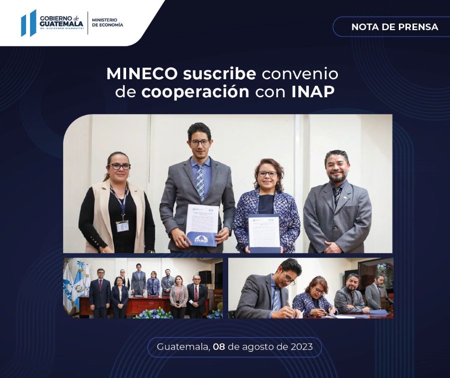 El Ministerio de Economía (MINECO) y el Instituto Nacional de Administración Pública (INAP), suscribieron este martes un convenio interinstitucional por medio del cual se brindarán espacios de oportunidad para mejorar los conocimientos y habilidades tanto técnicas como profesionales de los trabajadores.